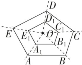 【例3】画出五边形 $ ABCDE $ 的位似图形 $ A_1B_1C_1D_1E_1 $,满足以点 $ O $ 为位似中心,与五边形 $ ABCDE $ 的相似比为 $ \frac{1}{2} $。(不写作法)