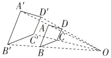 4. 如图,四边形 $ ABCD $ 与四边形 $ A'B'C'D' $ 位似,位似中心为点 $ O $,$ OC = 6 $,$ CC' = 4 $,$ AB = 3 $,则 $ A'B' = $