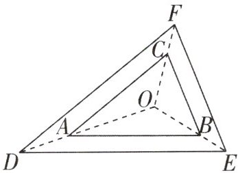 3.(2024秋·深圳期中)如图,$ \triangle ABC $ 与 $ \triangle DEF $ 是位似图形,点 $ O $ 是位似中心。若 $ OA = 2AD $,$ \triangle ABC $ 的周长为4,则 $ \triangle DEF $ 的周长为(