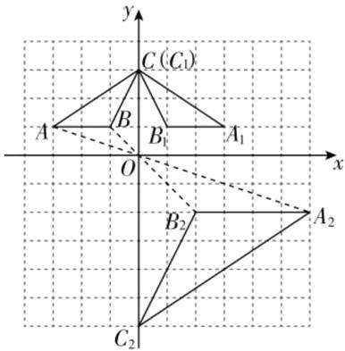 (2)在第四象限内画出 $ \triangle ABC $ 以点 $ O $ 为位似中心的位似图形 $ \triangle A_2B_2C_2 $,$ \triangle ABC $ 与 $ \triangle A_2B_2C_2 $ 的位似比为 $ 1 : 2 $;