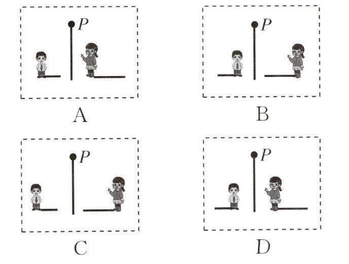 【例2】下列是描述小明和小颖在同一盏路灯P下影子的图片,其中合理的是(