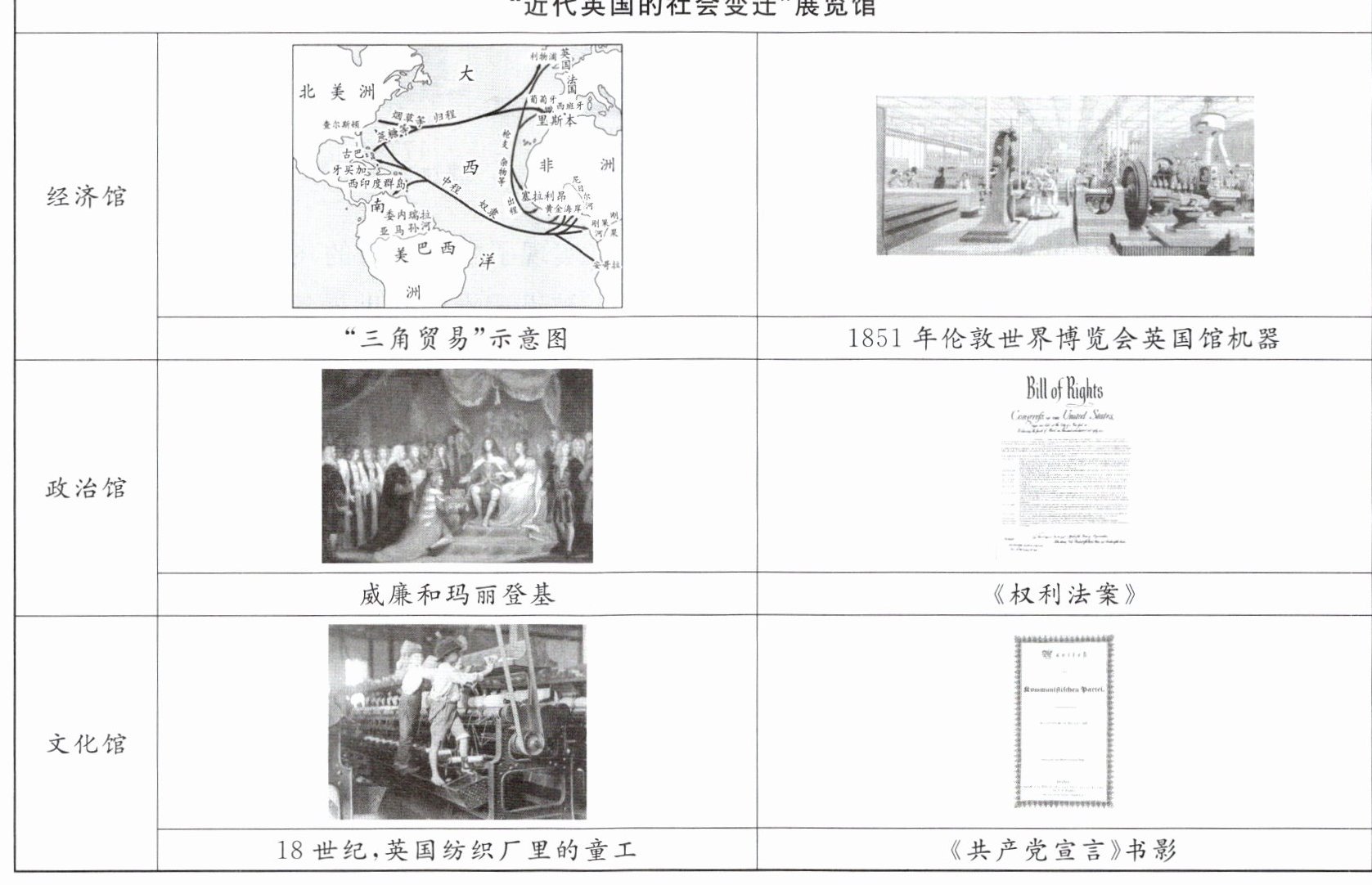 7. (2024·广东梅州期末)(教材图片改编)某中学组织九年级学生就“近代英国的社会变迁”进行项目式学习,收集了以下一些材料。阅读材料,回答问题。(12分)