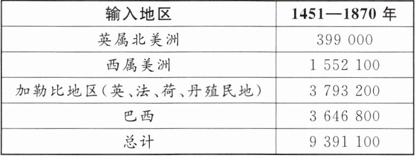 材料一 输入南北美洲的大约奴隶数(非洲黑奴)