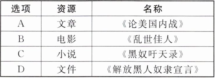 5. (2022·四川乐山中考)历史学家傅斯年认为“直接史料”是“未经中间人修改或者转写的史料”,即当时人的记述,具有较高的研究价值。下列材料都与美国内战有关,可信度最高的是(