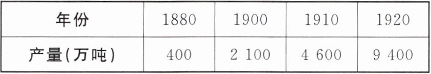 2. (2022·湖南娄底中考)阅读下表,结合所学,请判断导致1880—1920年世界石油年产量发生变化的原因是 (