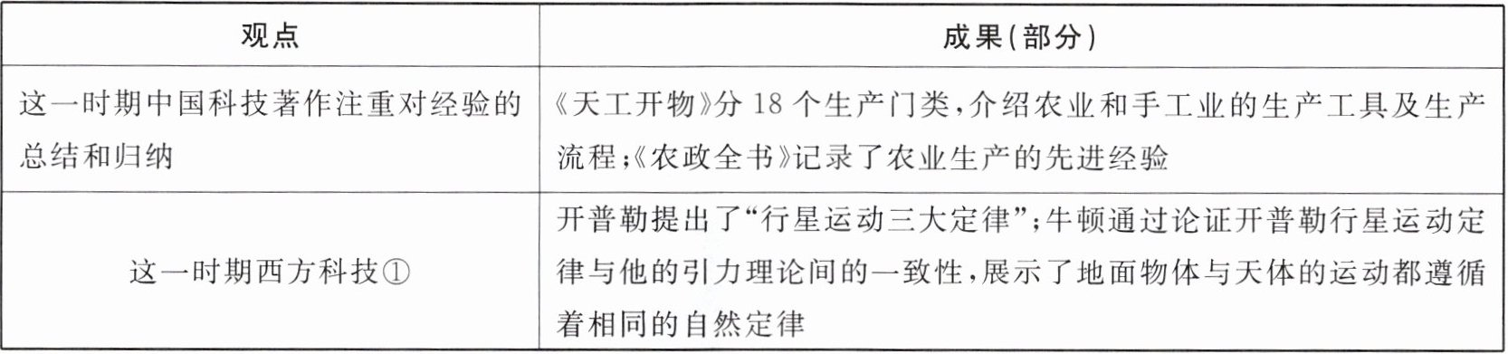 )观点:这一时期中国科技著作注重对经验的总结和归纳,成果(部分):《天工开物》分 18 个生产门类,介绍农业和手工业的生产工具及生产流程;《农政全书》记录了农业生产的先进经验