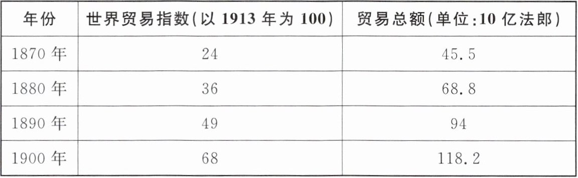 4. (2022·深圳模拟)据下表可知,推动当时世界贸易变化的主要原因是(