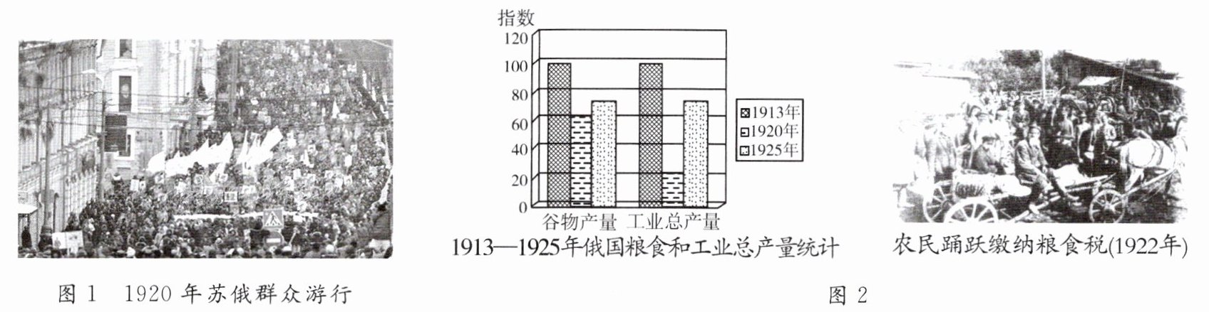 1. 材料一图1中苏俄群众的示威游行是哪一政策引起的?(