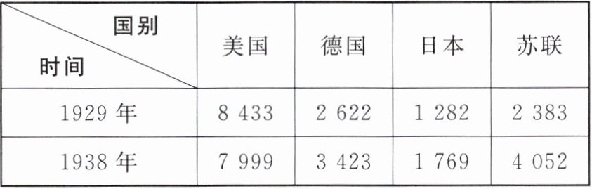 4. 下表为经济大危机前后美、德、日、苏四国GDP对照表(单位:亿元)。据此可知(