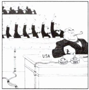 3. (2023·广州模拟)(跨学科·美术)如图是“冷战”期间苏联漫画家创作的一幅漫画。画中坐在第一排的美国按铃后,后排欧洲各国就跟着举手。该漫画意在揭露 (
