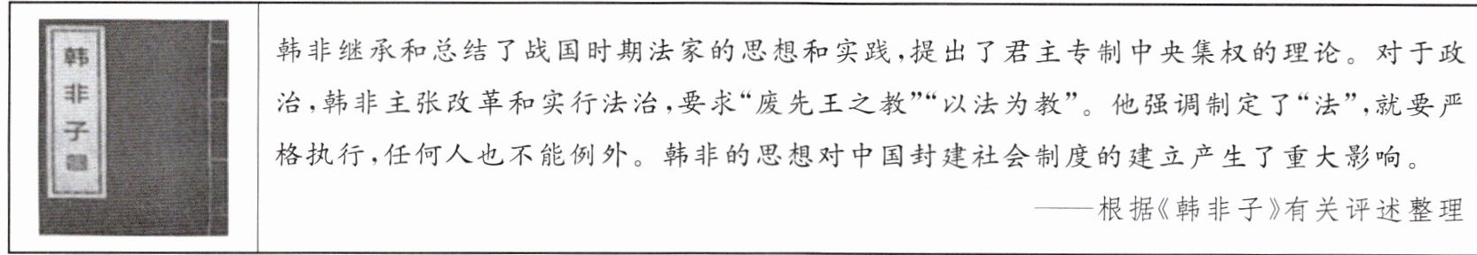 (1)根据所学知识,指出材料一所示韩非的政治主张以及对中国古代政治制度产生的影响。(4分)(侧重考查时空观念、历史解释)