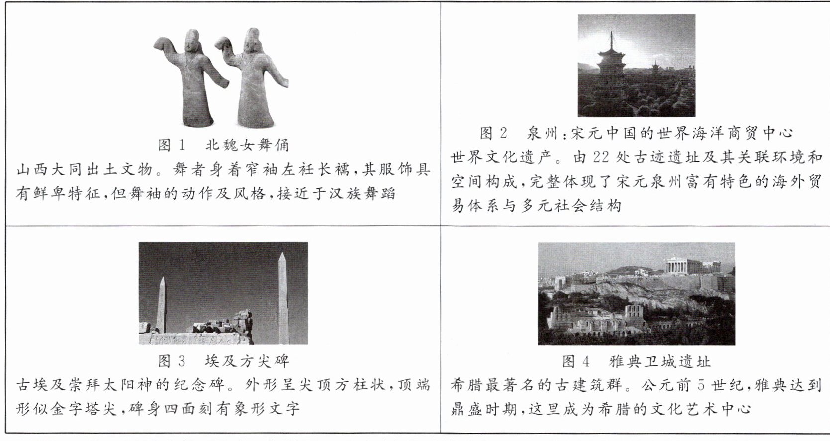 |图1 北魏女舞俑山西大同出土文物。舞者身着窄袖左衽长襦,其服饰具有鲜卑特征,但舞袖的动作及风格,接近于汉族舞蹈|图2 泉州:宋元中国的世界海洋商贸中心世界文化遗产。由22处古迹遗址及其关联环境和空间构成,完整体现了宋元泉州富有特色的海外贸易体系与多元社会结构|