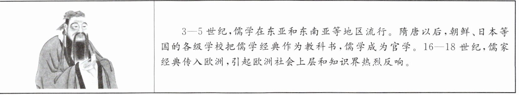 (1) 根据材料一并结合所学知识,指出图片人物的核心思想。儒学的对外传播说明了什么?(4分)(侧重考查史料实证、历史解释)
