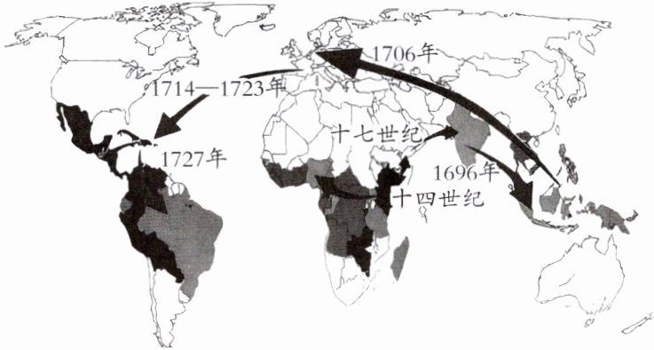 2. (2024·广东佛山二模)(跨学科·地理)下图为14—18世纪世界咖啡传播路线图。据此,可提炼的主题为(