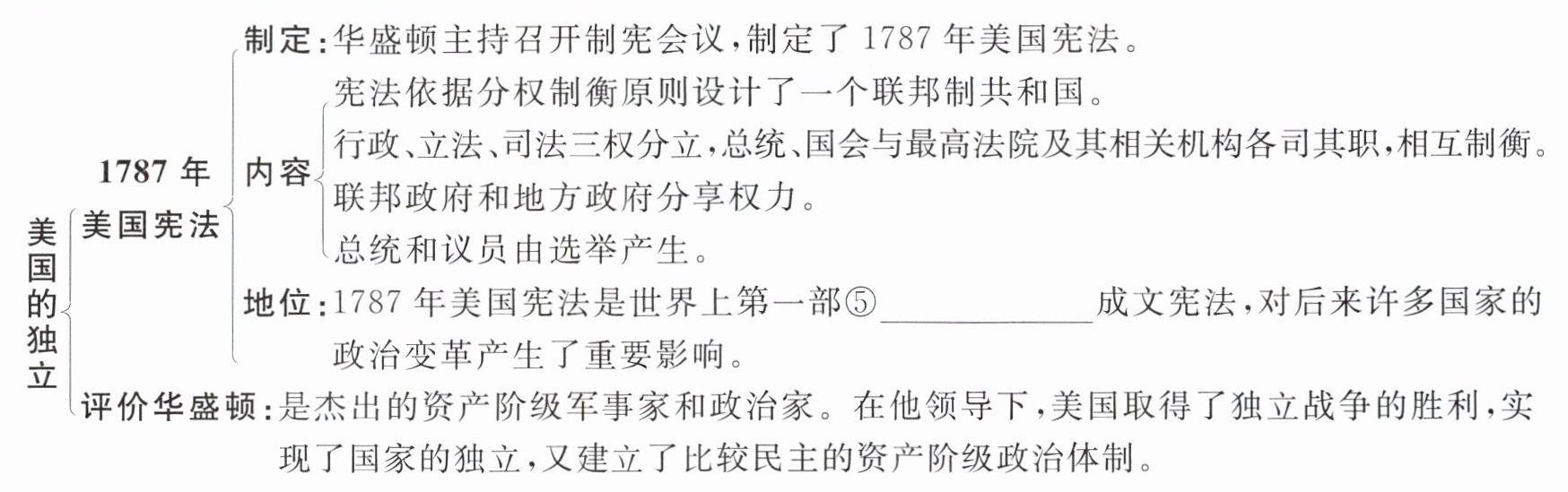 成文宪法,对后来许多国家的政治变革产生了重要影响。评价华盛顿:是杰出的资产阶级军事家和政治家。在他领导下,美国取得了独立战争的胜利,实现了国家的独立,又建立了比较民主的资产阶级政治体制。