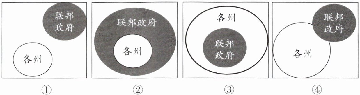 6. 根据1787年美国宪法的规定,如图中正确反映出美国联邦政府与州政府权力关系的是(