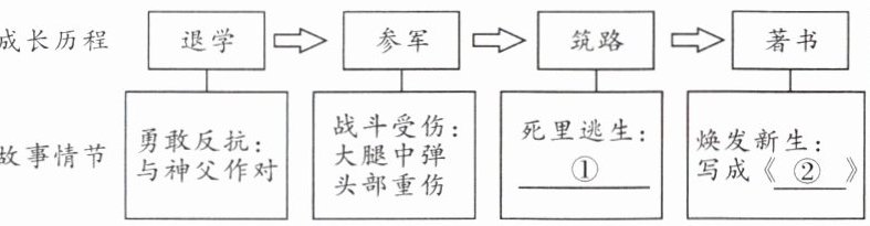 (1)中考新考法 完善思维导图 下图概括了保尔的成长历程,请你根据小说内容在横线上填写相应的情节。