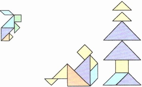 5. 跨学科 成语故事 下面是用七巧板拼成的一个成语故事,这个成语是()。图中用了哪些多边形? 请在下面空白处写出来。