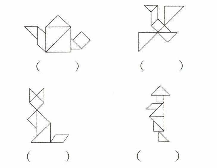 4. 下面的图形,是用七巧板拼成的画“√”,不是用七巧板拼成的画“×”。