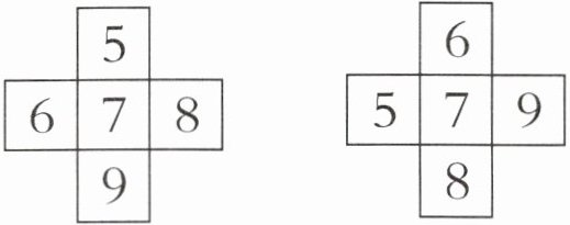 思路点拨 可以先将其中一个数填在一个空格里,如先将 5 填入空格里,$5 + 7 = 12,21 - 12 = 9$,与 5,7 同横行或竖列的另一个数是 9,将 9 填入空格里,再将余下的两个数填入其他空格即可。