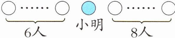 例 同学们排成一队,小明前面有 6 人,后面有 8 人。这一队一共有多少人?