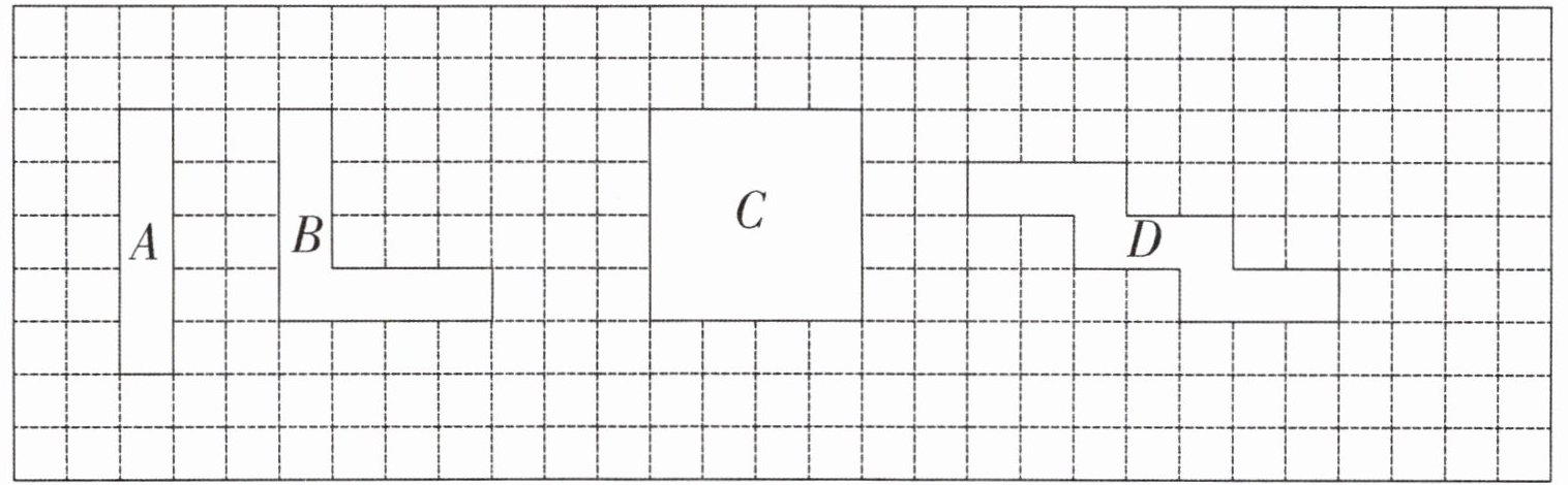 A 图形缺()个□,B 图形缺()个□,C 图形缺()个□,D 图形缺()个□。