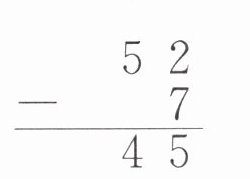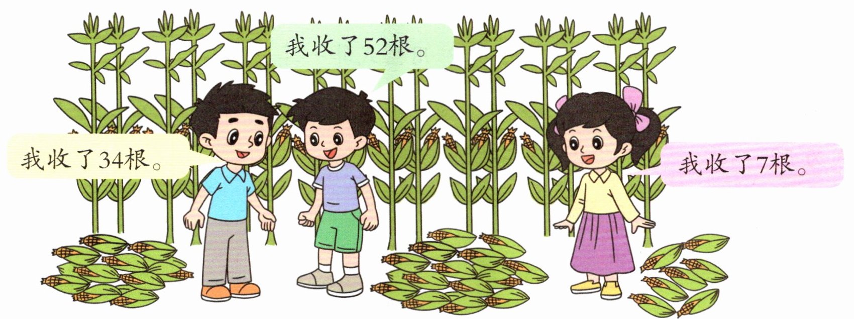 例1过程探索 要想求淘气比笑笑多收了多少根玉米,就是求52比7多多少,列式为52−7。