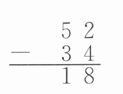 用竖式计算,相同数位对齐,从个位减起,个位上2减4不够减,要从十位退1,在个位上加10再减,12−4=8,8写在得数的个位上。十位上5退1剩4,4−3=1,1写在得数的十位上,得到结果是18。