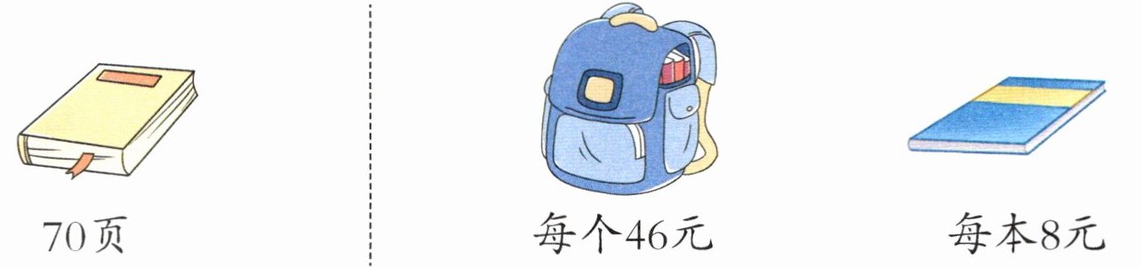 过程探索 从图中可以看出一本书70页,已经看了46页,先求还剩多少页,列式为(),余下的想用8天看完,用余下的页数()8,可以求出平均每天看多少页;用70元买了一个价格为46元的书包,用余下的钱()8,可以求出余下的钱可以买多少本笔记本。