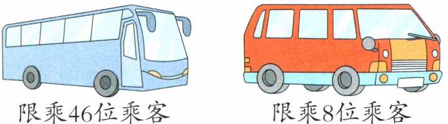 过程探索 一辆大车可以坐46位乘客,一辆小车可以坐8位乘客,求大车坐满后还需要多少辆小车,要先求出大车坐满后还剩下多少人,用()计算;再用剩下的人数()一辆小车能坐的乘客数。