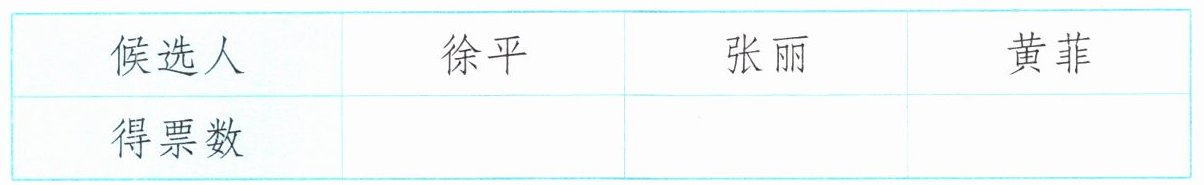 (4)选举那天,王萍因病请假没能参与投票,如果她也投了票,那么结果()改变。(填“会”或“不会”)