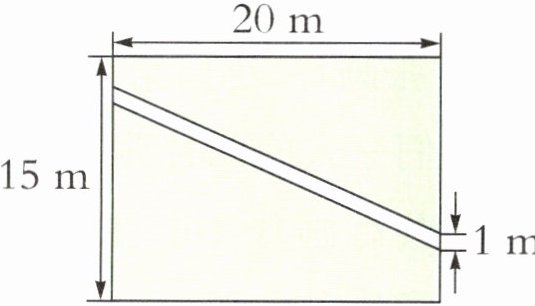 6. 如右下图,在长20m、宽15m的长方形草地上铺一条1m宽的小路,现在草地的面积是多少平方米?