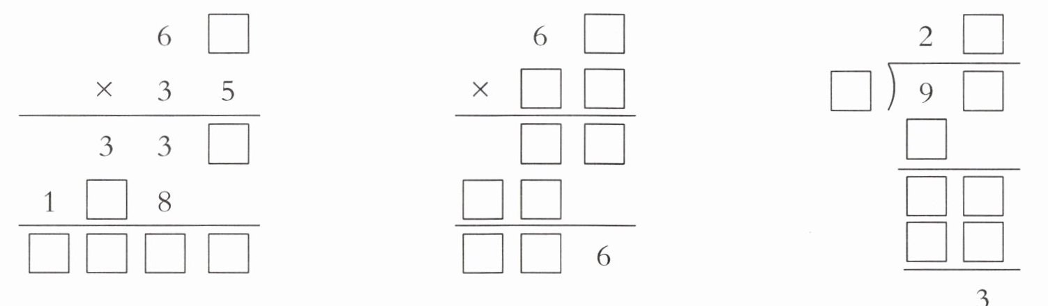 3. 在$\square$里填上合适的数字,使竖式成立。