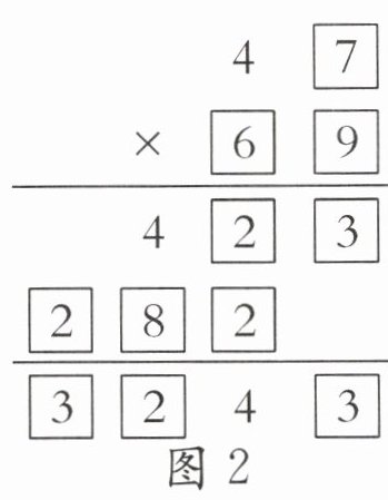 例 在图1的$\square$里填上合适的数字,使竖式成立。
