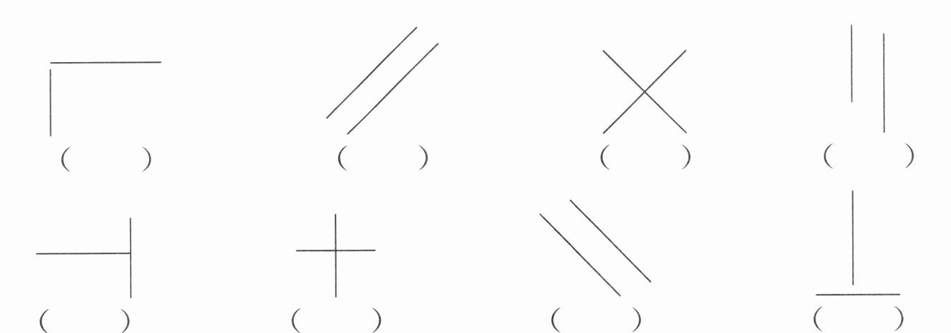2. 在每组平行线下面的()里画“△”,在每组互相垂直的线下面的()里画“□”
