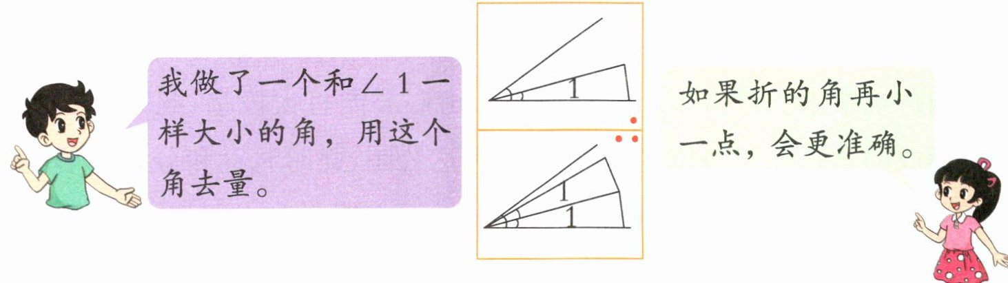 ②如果将$∠1$对折,用更小的角作为标准去量,那么量得的结果会更准确。