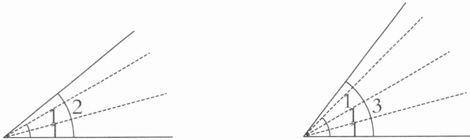 发现:①用$∠1$作为标准去量$∠2$和$∠3$,都有剩余。