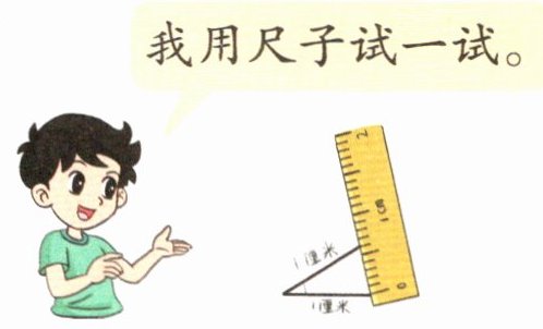 如图,从角的顶点出发,先沿角的两条边分别量出相等的一段距离(1厘米)并点上点,连接两个点形成一条线段,再用尺子量出线段的长度。