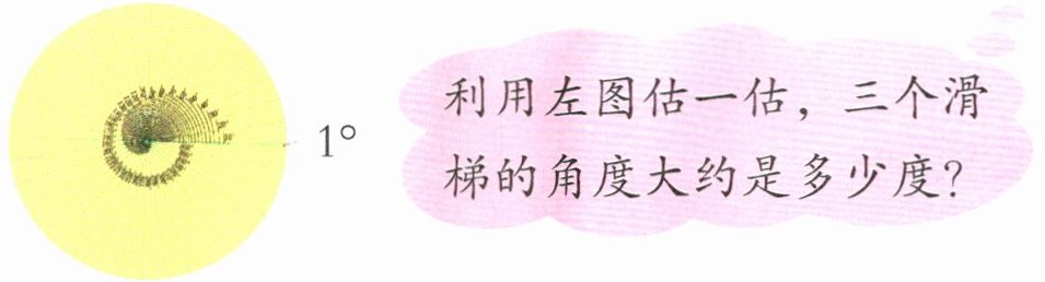 过程探索 将圆平均分成360份,其中的1份所对的角的大小叫作1度(记作$1^{\circ }$),通常用$1^{\circ }$作为度量角的单位。1周角= (),1平角= (),1直角= ()。