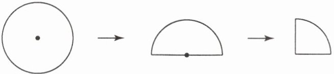 1. 拿一张圆纸片(如图),把它对折再对折,得到的角是()。