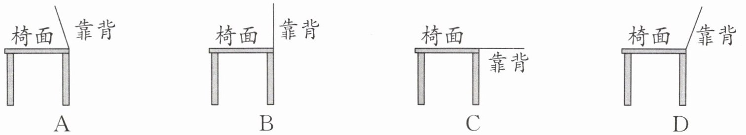 2. 新情境 座椅靠背角度 从人体脊柱健康的角度考虑,座椅靠背角度在$103^{\circ }\sim 112^{\circ }$之间,被认为是符合人体脊柱健康的角度。下面各图中,符合要求的是()。