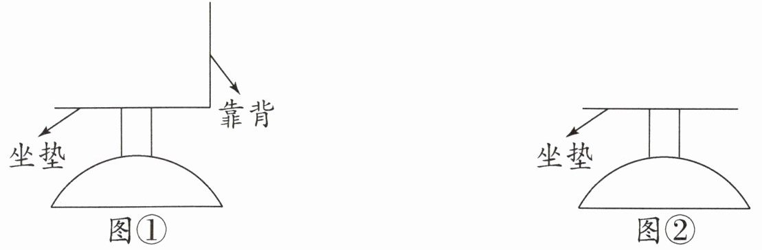 8. 新考法 操作探究 研究表明,座椅靠背与坐垫之间的角度为$105^{\circ }$时坐着会比较舒适。下面座椅靠背调节到什么位置坐着会比较舒适?请你在图②中画出来。