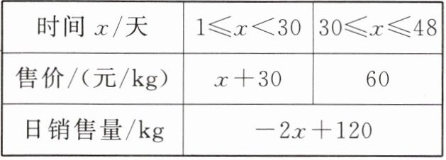 某商贸公司购进某种商品,这种商品的进价为20元/kg.经过市场调研,整理出这种商品在第x$(1≤x≤48)$天的售价与日销售量的相关信息如表.设销售这种商品的日销售利润为y元.