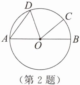 2. 如图,AB是$\odot O$的直径,若$\overset{\frown }{AD}= \overset{\frown }{CD},∠COB= 40^{\circ }$,则$∠A$的度数是
