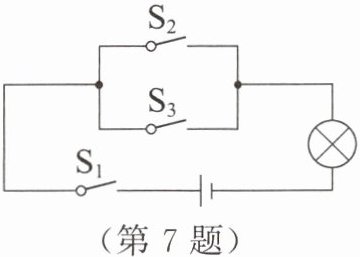 7. 跨学科(2024内江)如图所示的电路中,当随机闭合开关$S_{1}$,$S_{2}$,$S_{3}$中的两个时,灯泡能发光的概率为(