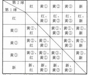 (2) 他应往袋中加入黄球. 理由: 记往袋中加入的球为“新”,摸得的两球所有可能的结果列表如下:
