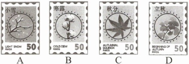 8. 传统文化“二十四节气”是中华上古农耕文明的智慧结晶,被国际气象界誉为“中国第五大发明”.小李同学购买了“二十四节气”的主题邮票,如图,他将A(小雪),B(寒露),C(秋分),D(立秋)四张邮票(除正面不同外,其余均相同)背面朝上洗匀.