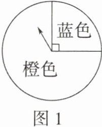 (1)有这样一道概率题:如图1,这是一个可以自由转动的转盘,转动转盘,当转盘停止时,指针落在蓝色区域和橙色区域的概率分别是多少?