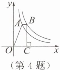 4. 如图,点 A 在反比例函数$y= \frac {2}{x}(x>0)$的图象上,点 B 在反比例函数$y= \frac {3}{x}(x>0)$的图象上,若$AB// x$轴,$BC⊥x$轴于点 C,则四边形 ABCO 的面积为