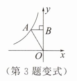 变式 如图,已知 A 为反比例函数$y= \frac {k}{x}(x<0)$的图象上的一点,过点 A 作$AB⊥y$轴,垂足为 B.若$△OAB$的面积为 2,则 k 的值为
